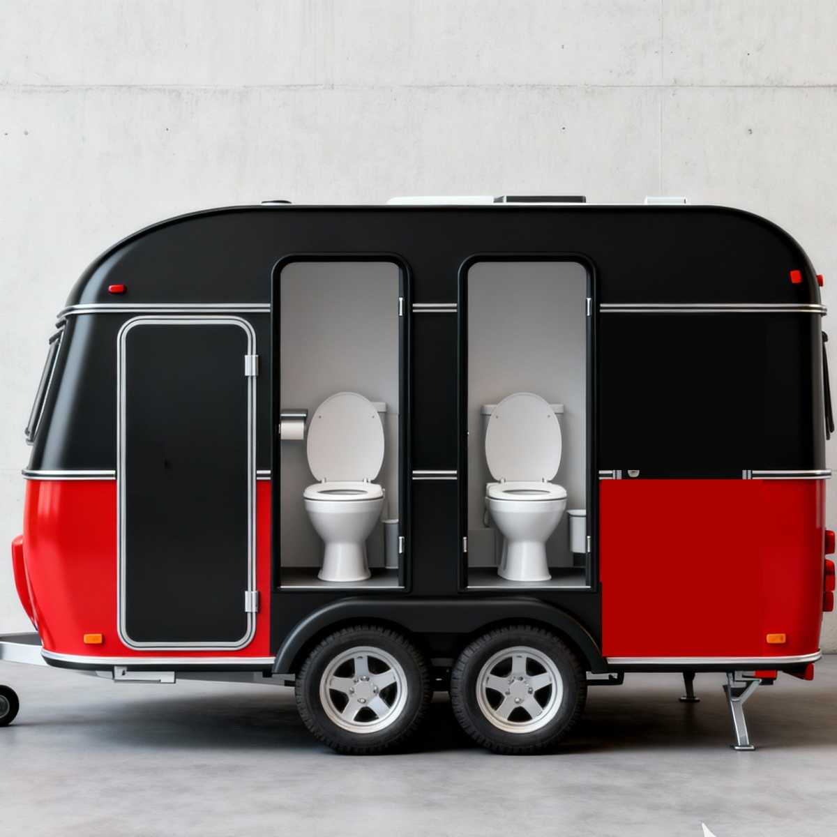 Unit toilet portable berbentuk caravan, nyaman dan elegan, cocok untuk event outdoor atau kebutuhan temporer dengan mobilitas tinggi.